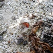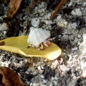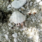 The island is also covered with stawberry hermit crabs in all sizes. They take what shells they can find to live in and as they grow they have to find bigger shells. They even climb trees. We saw one today up a tree with the most beautiful shell. We told him he was very lucky to live in such a beautiful house. All down the beach we stopped to see what these little crabs were living in. Some were living decidedly downscale while others were more upper crusty in their choice of abodes.