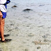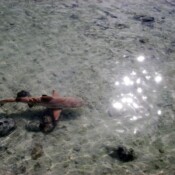 We got out of the water and over the next hour or so we saw many more sharks. None more than two feet. I got brave and started wading into the water to get them to come over. And they did. We’ve got a few of pictures of them. In the pictures of them alone we could claim they were huge, but then the next shot has my foot in it ruining their fearsome appearance.