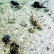As we neared the shore of the main island Susan announced that there was a shark ahead. She was wrong. There were six. All swiming with their dorsal fins out of the water and that distinctive black tip showing. I was a little unnerved as I was leading and once they heard me coming, they turned to swim over and find out what I was. Susan told me to put our snorkel bag in the water and that would scare them away. On this point she was exactly right. She’s had experience with these guys at Palmyra. In all honesty it was silly to get worked up about these sharks, the biggest was probably 18 inches long. I’ve seen bigger fish when snorkeling and they never bothered me. I also know that black tips don’t usually attack humans. But then they are sharks. They have a bad reputation.