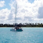 So, Susan is polishing the coconut crab carapice to keep as a Mopelia souvenir and Steve is off lobstering.