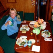 The VHF radio is just like a big party line phone of the old days. You can listen to everything. People meet on channel 16 and then say they’re going to channel 6. So, you can change and listen in, if you’re inclined. It’s fun, because you can make restaurant “bookings” (reservations here) and inquire about just about anything. There is a daily morning show at 8:30 that gives the weather and local advertisements for cruisers. That’s how we knew to take our garbage into town today at 8:30 a.m.