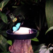 Our first stop was Butterfly World. It’s a large enclosure with 2,000 or so butterflies buzzing around. One variety is bright blue and black. They’re the hardest to photograph, of course. The most amazing thing was that a buttefly landed on this guy’s backpack and started laying eggs. They collected them before he left.