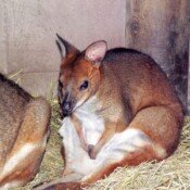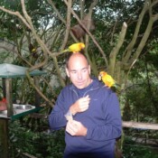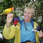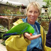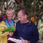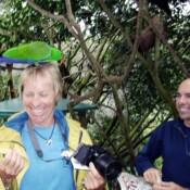The second stop was Birdworld. Boy was it fun. We bought a small bag of food an quickly had exotic birds all over us. The native Eclectus Parrots were very friendly, landing on us and even stealing Susan’s earring. I got it back out of his mouth. The non native Sun Conures were also agressively friendly. Many other birds also landed on us for a handout. My favorite Rainbow Lorikeets weren’t among the friendly though. They came close, but ignored us. The Red-tailed Balck Cockatoos finally came down for a bite to eat also. The one in the lobby was eager to have his head scratched as he sat on Susan’s shoulder.