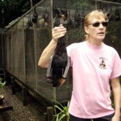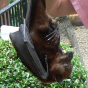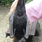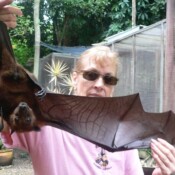 Large bats called flying foxes are all over Australia. We saw a big group hanging out in the trees at Billabong Sanctuary when we were there. In Kurada there is a rescue organization and they have a free exhibit. This was our next stop. The woman who runs it had just shut the gate, but opened back up as we arrived. She showed us three kinds of bats and to Susan’s disappointment didn’t let us touch them. They’re smarter than dogs and the ones she can’t rehabilitate, that are permenant residents, know their names. One of them was begging to come out of the large enclosure. She got her way.