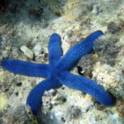2020 Update: For my birthday we tied up to a mooring ball so we could go to the Spanish Restaurant where they serve only paella. The warm and friendly family that run the place are great. It’s their mooring ball just for customers. The paella was pretty good until you tried to discern what the boney meat that was in it. I suspect it was chicken backs alone. It was still fabulous and we were serenaded afterwards. It’s a treasured memory. The floating art gallery was close to where we tied up for my birthday dinner. Really adorable. Underneath the boat the bottom was all sand and covered as far as the eye could see with blue starfish. They were socially distanced. Picture below from Susan in Australia, but this is the same species.