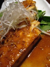 Gazen is known for their house made tofu. So, we had to order something tofu. We got the tofu steak with chicken miso sauce and it arrived next . The dish was tasty, but not extraordinary. I couldn’t tell that it was